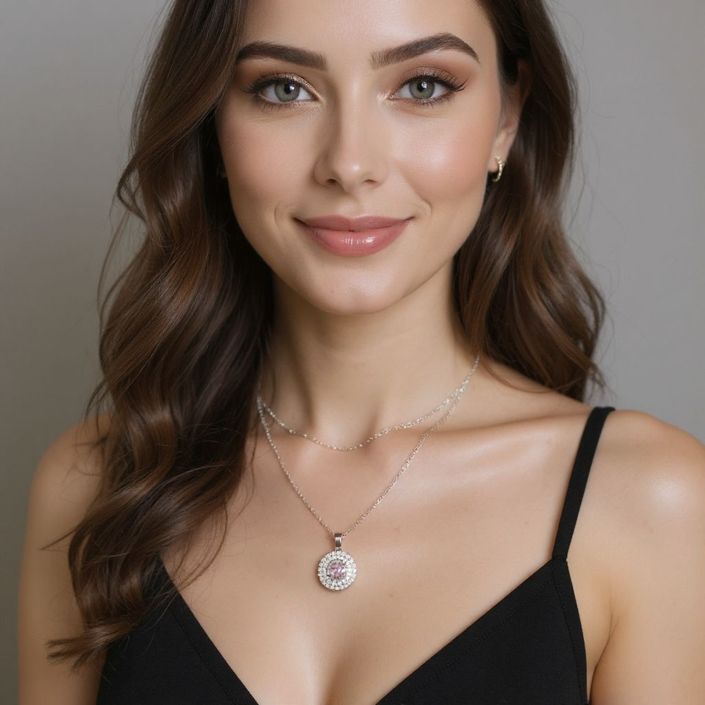 The Blush Halo Pendant Necklace is the perfect blend of sophistication and timeless elegance. Crafted in premium sterling silver, this pendant features a delicate blush-pink crystal at its center, surrounded by a halo of high-grade cubic zirconia for a luxurious sparkle.