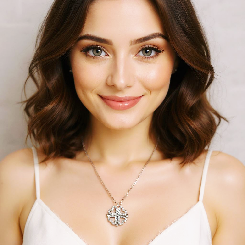 A timeless piece with a magical twist — the Celeste Magnetic Heart Locket Necklace combines elegance and innovation. Crafted in premium sterling silver with a brilliant crystal center, this pendant features magnetic heart-shaped segments that gently open up to reveal a stunning design inside.