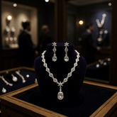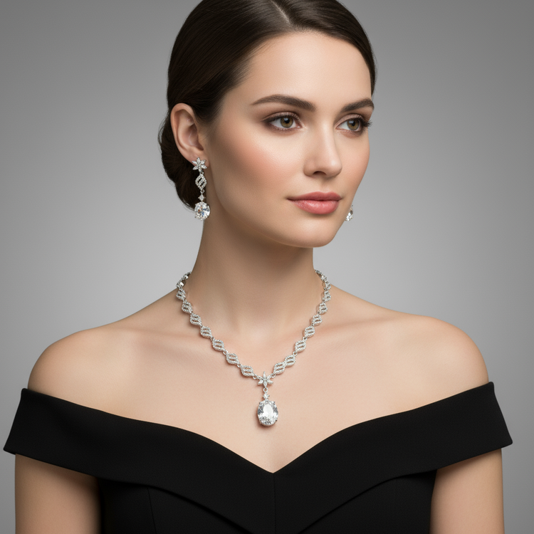 Add timeless sparkle to your special occasions with our Elegant Oval Crystal Necklace Set with Earrings & Tikka. Designed with shimmering oval stones and encrusted with high-quality crystals, this 3-piece set is perfect for weddings, parties, or formal events.