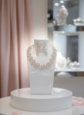Designed with sparkling crystals and delicate pink stones, this jewellery set is perfect for weddings, parties, or special occasions.