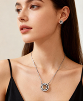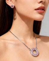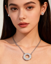 This elegant set features a luxury circle pendant necklace paired with matching crystal-studded earrings, crafted with AAA-grade cubic zirconia stones for a flawless shine.