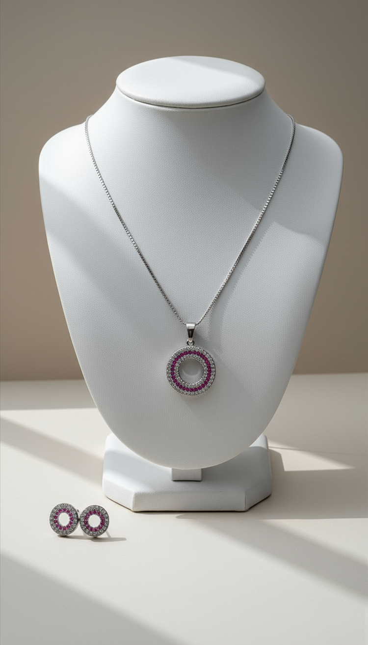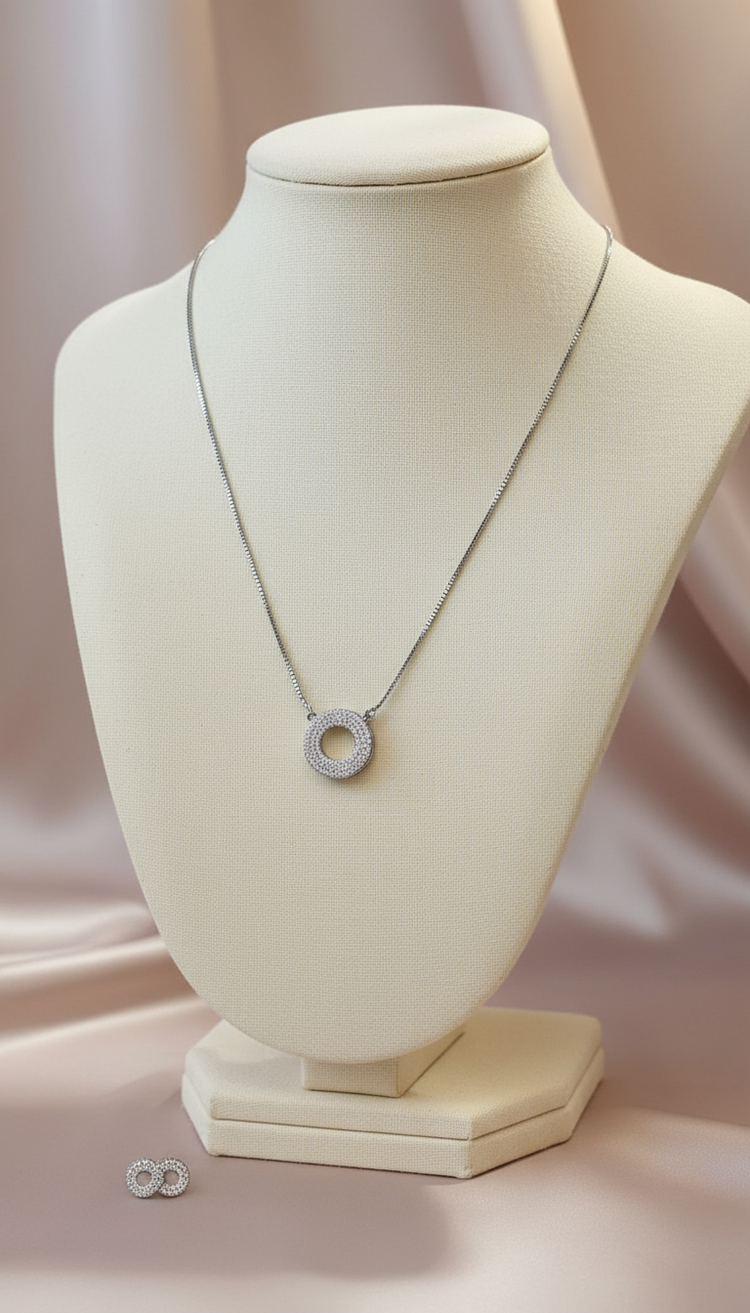 Design: Minimal Halo Circle Pendant with Matching Studs