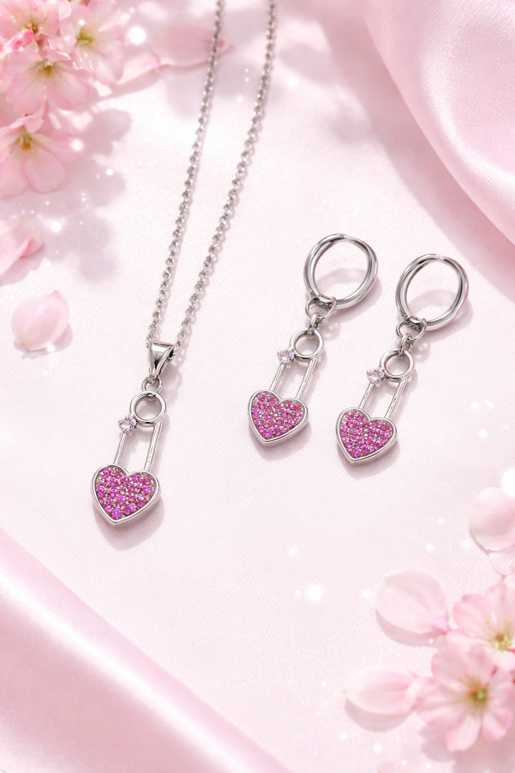 Add a romantic and modern touch to your jewellery collection with our elegant Lovelock Pendant and Earring Set, designed for women who love meaningful and stylish accessories. Featuring a unique heart-shaped lock design, this matching necklace and earring set symbolises love, connection, and timeless beauty.