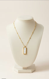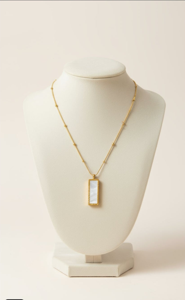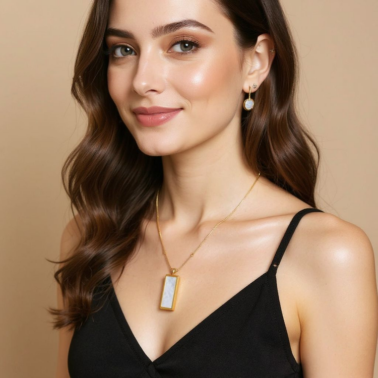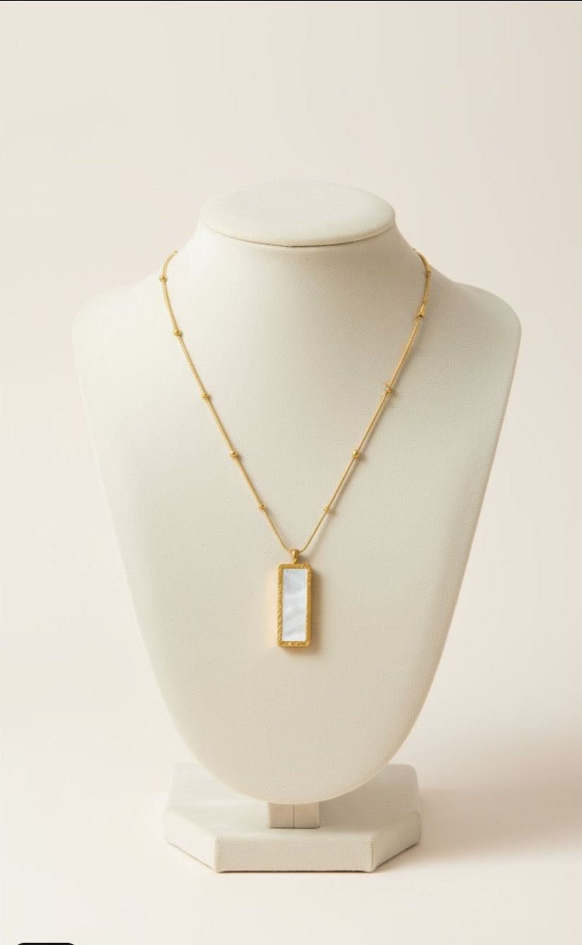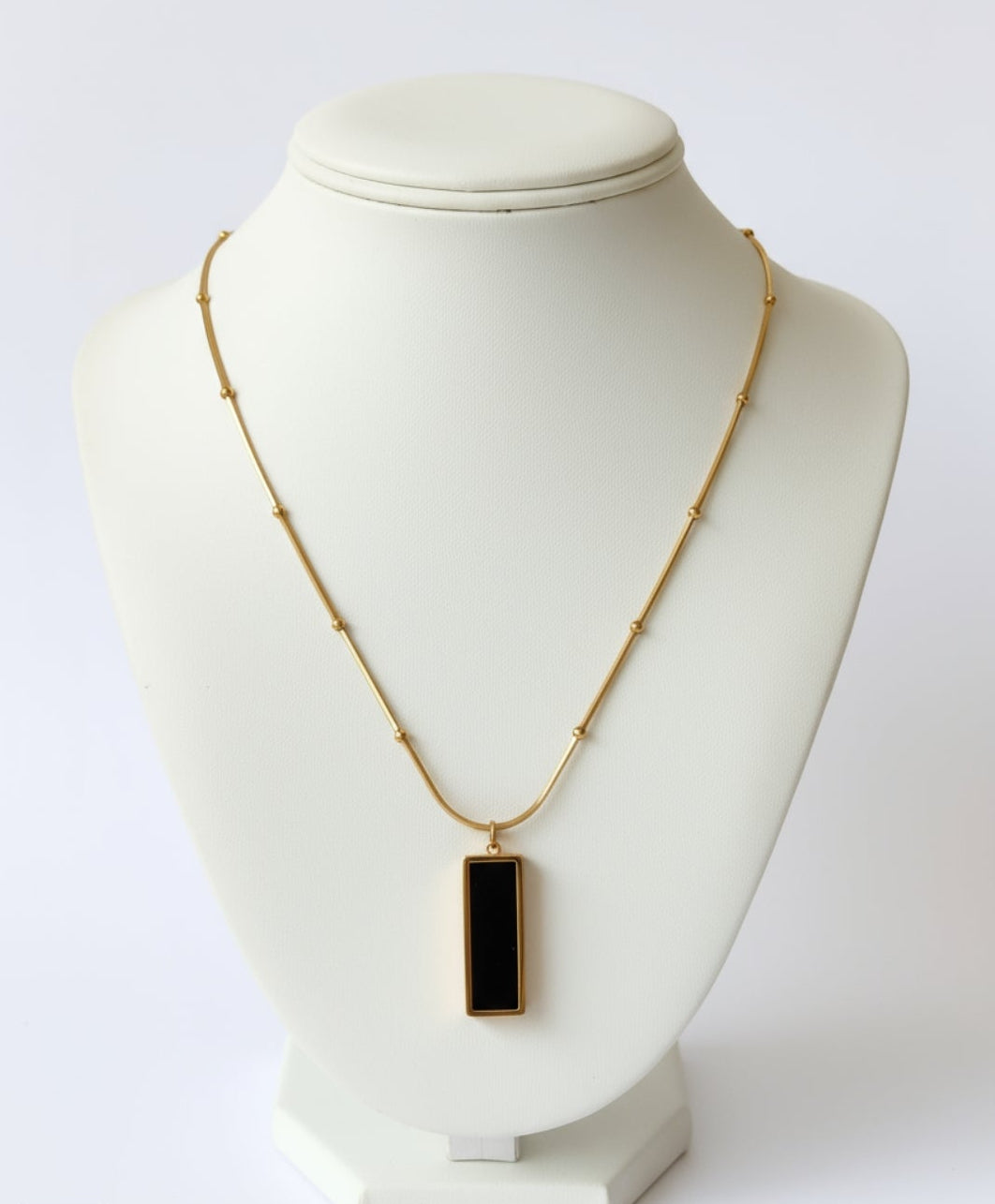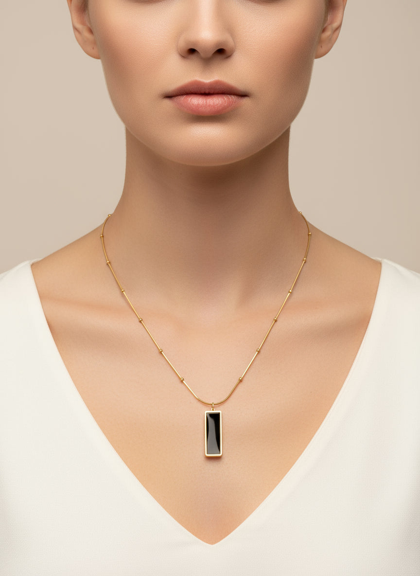Elevate your everyday look with this reversible rectangular pendant necklace, designed for versatility and elegance. Featuring a sleek gold-plated frame, the pendant showcases two interchangeable sides – a bold black onyx-inspired stone on one side and a luminous white mother-of-pearl finish on the other. Perfect for both casual outfits and evening wear, this unique double-sided necklace lets you switch up your style effortlessly.