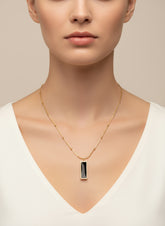 Reversible Rectangle Pendant Necklace - Black Onyx & White Mother-of-Pearl, Gold Finish