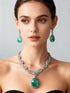 Emerald Green Teardrop Necklace & Earrings Set Silver Plated with Crystals