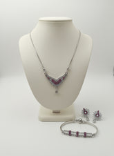 Peacock Crystal Necklace, Earrings & Bracelet Set - Multicolour | Black | Pink