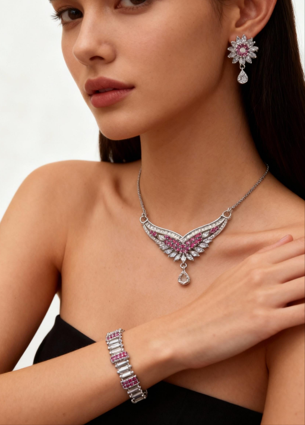 Whether for weddings, parties, or special celebrations, this versatile set adds timeless elegance and a touch of sparkle to every outfit.