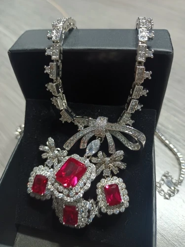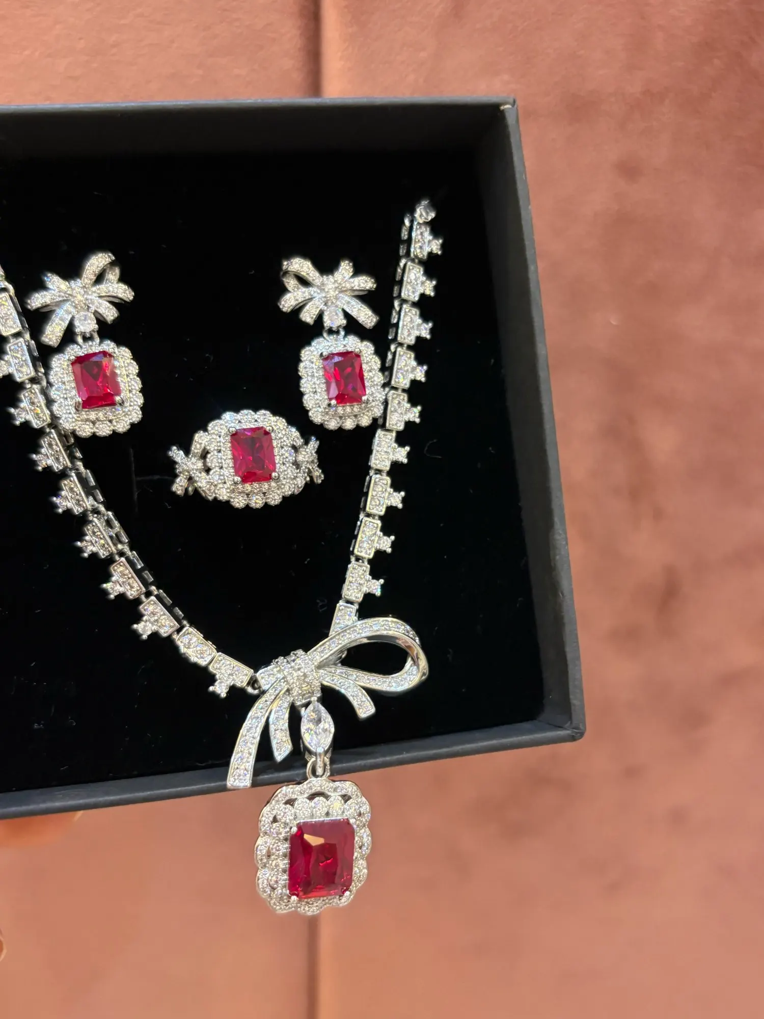 Available in four stunning gemstone colours – Aqua Blue, Diamond White, Ruby Red & Blush Pink, this necklace lets you choose the shade that matches your mood, outfit, or occasion. Finished with a high-polish anti-tarnish coating, it offers long-lasting shine and everyday comfort.