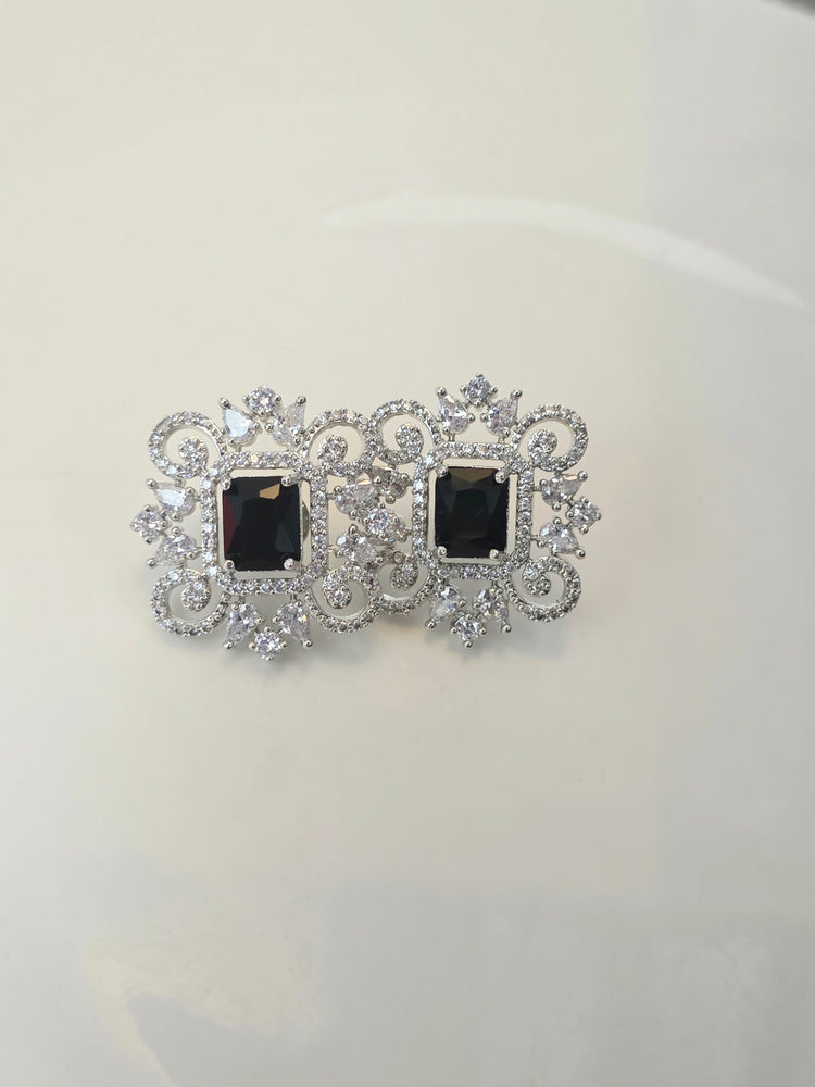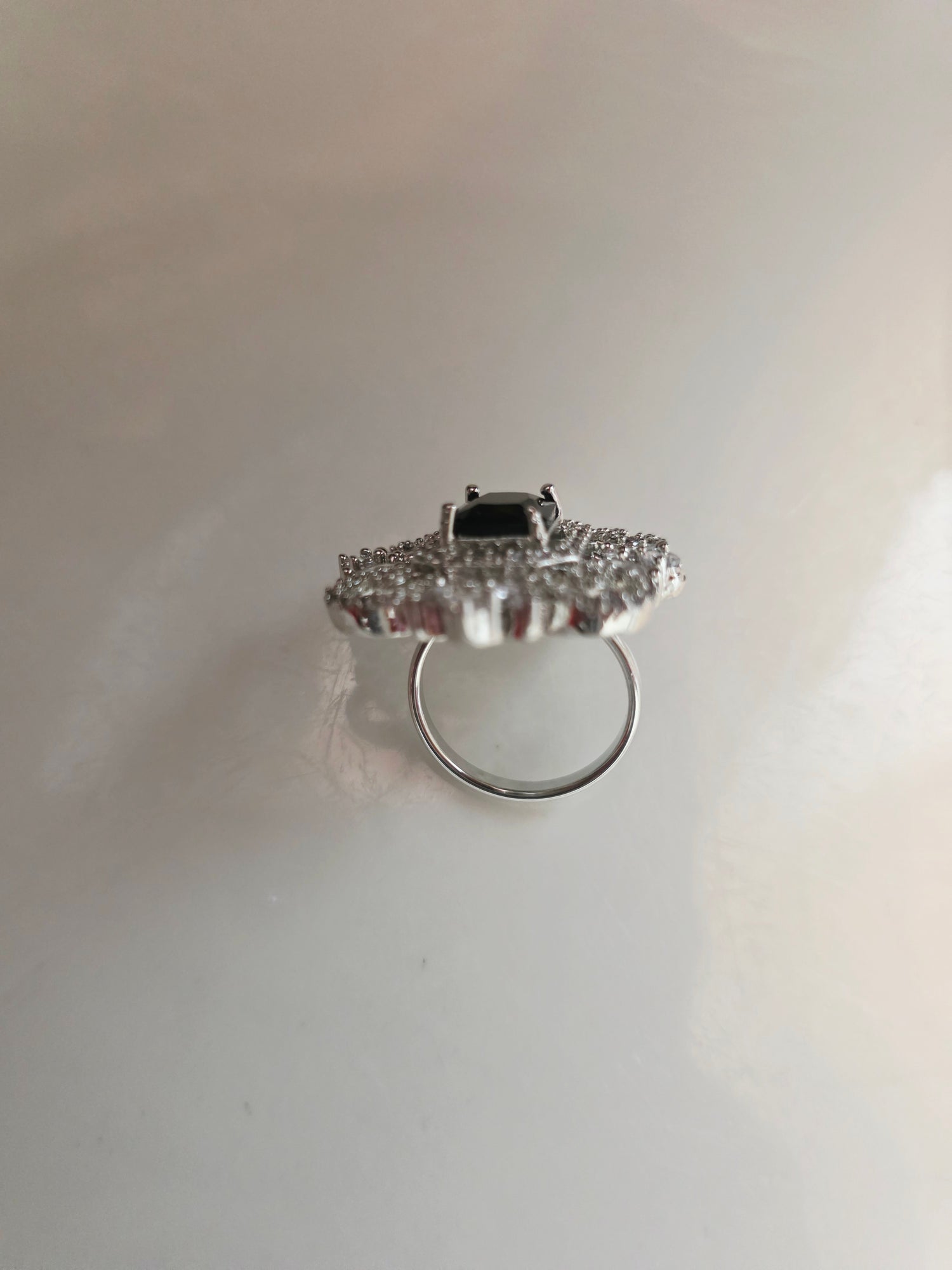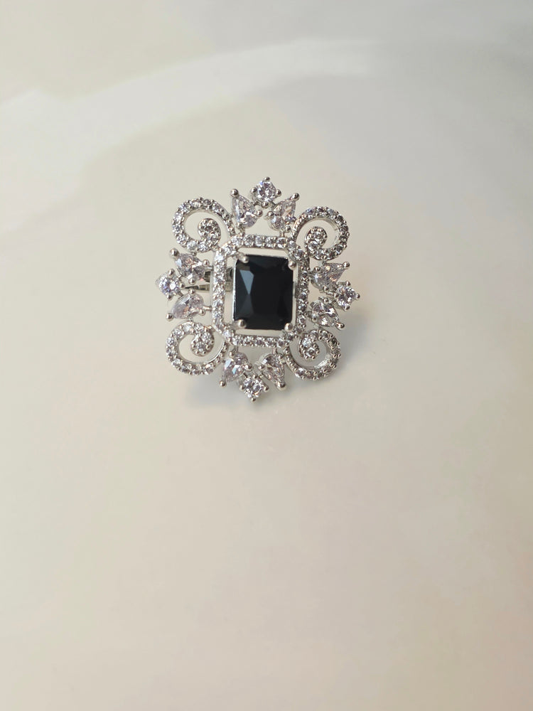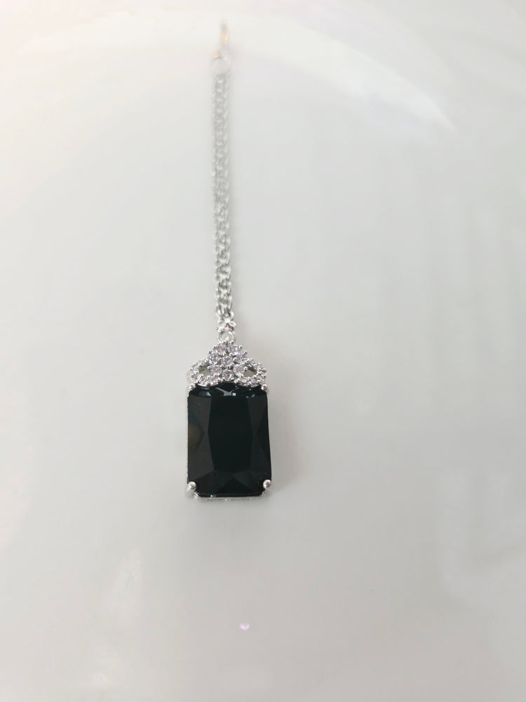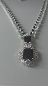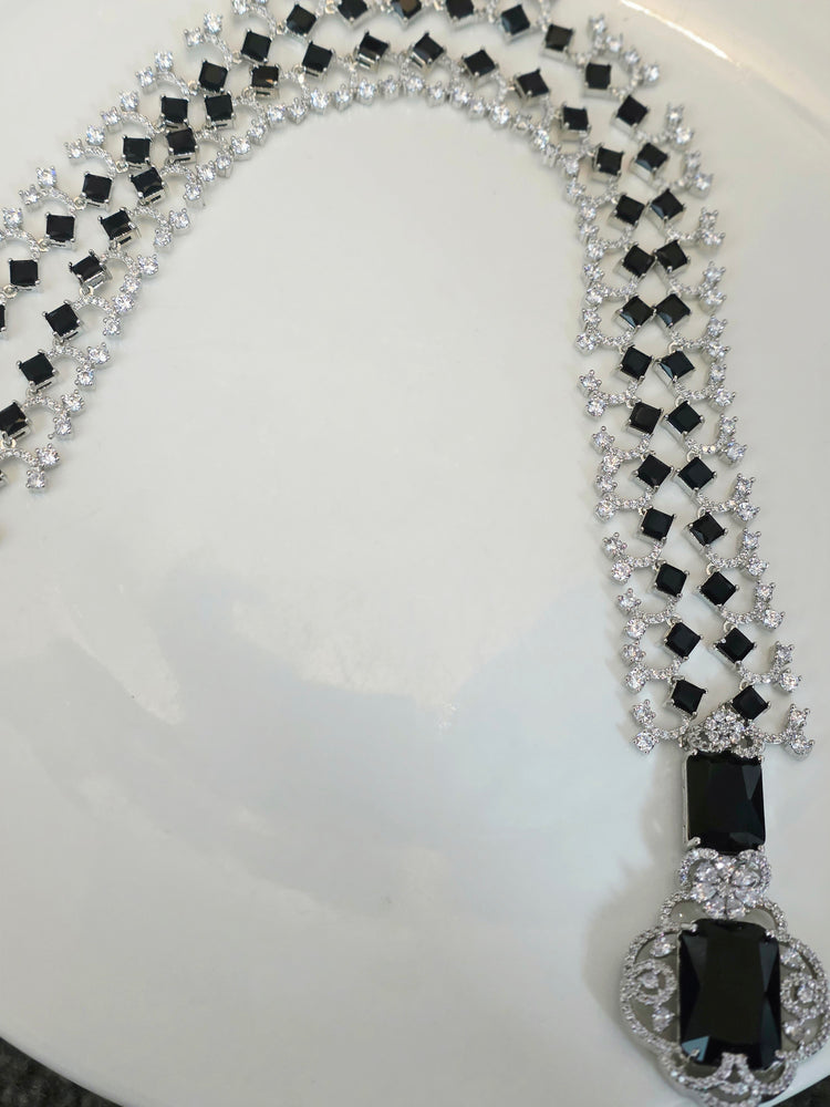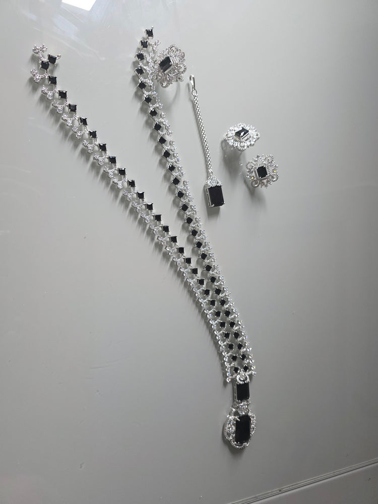 Elevate your style with this Black Onyx Luxury Jewellery Set, crafted for timeless elegance. This full set includes a statement necklace, matching bracelet, adjustable ring, and pendant chain – all designed with striking black onyx stones framed in silver plating and encrusted with sparkling crystals.