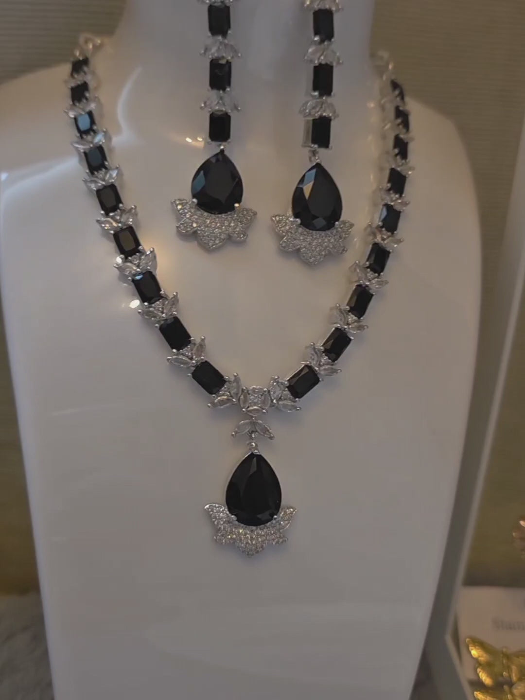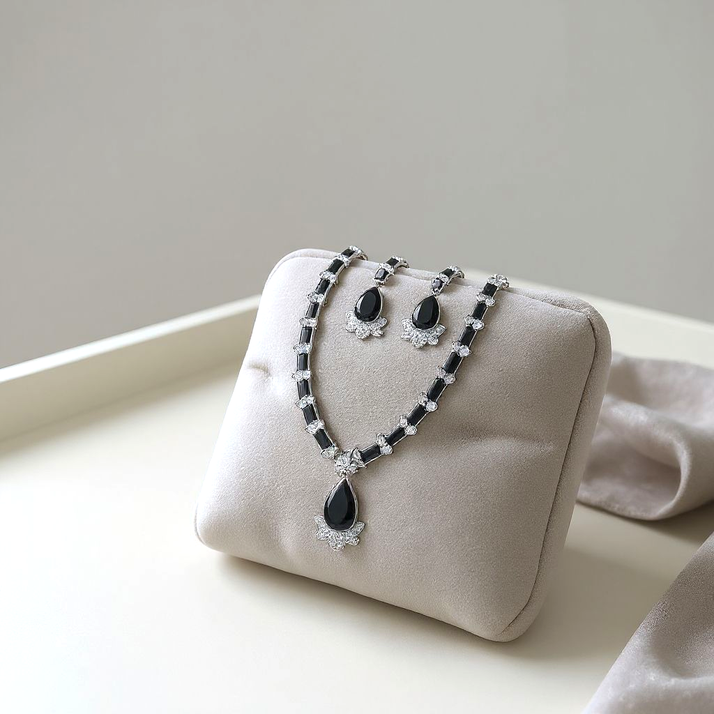 Designed with a silver-plated finish and high-quality simulated stones, this set is both lightweight and durable—ideal for evening wear, weddings, formal parties, or gifting. The black stones add sophistication, while the sparkling crystal accents ensure you stand out beautifully.