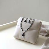 Make a bold statement with our Black Teardrop Necklace & Earrings Set, crafted with elegance and timeless style. This jewellery set features striking black teardrop stones framed with shimmering crystals, paired with matching drop earrings for a perfectly coordinated look