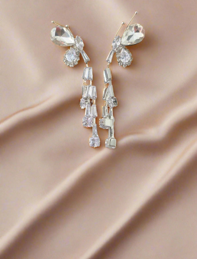 Add a touch of timeless elegance with the Celestia Crystal Cascade Earrings — the perfect blend of luxury and sophistication. Designed with a pear-cut crystal stud paired with dangling baguette and round-cut stones, these earrings sparkle beautifully from every angle.