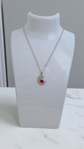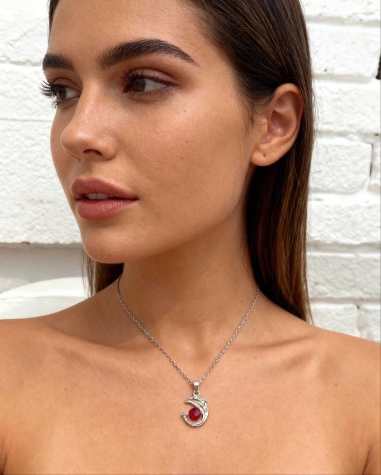 Illuminate your look with the Celestia Ruby Moon Pendant Necklace, a beautifully designed piece that blends modern elegance with timeless charm. Featuring a crescent-shaped pendant adorned with shimmering cubic zirconia crystals and a deep ruby-red stone centerpiece, this necklace adds a touch of luxury to any outfit.