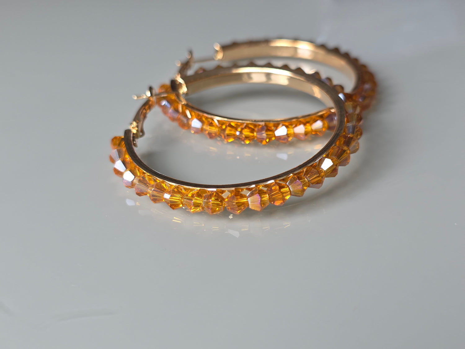 Crystal Beaded Hoop Earrings Elegant Lightweight Hoops for Women (6 Colors)
