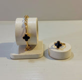 Gold Clover flexible Bracelet & Ring Set (White / Black)