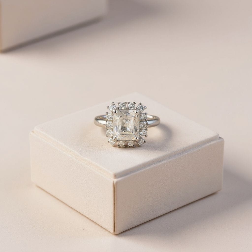 Elevate your jewellery game with the Luxe Radiance Halo Ring Collection — a stunning range of premium statement rings designed to add effortless glamour to any look. Featuring a square-cut centre stone surrounded by a halo of brilliant micro-crystals, this ring delivers timeless elegance with a modern twist.