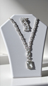 Add timeless glamour to your look with the Radiant Gemstone Jewellery Set, featuring a stunning long-drop necklace paired with matching earrings. Each piece is designed with square-cut stones that sparkle beautifully against a sleek silver finish. Perfect for parties, weddings, and elegant evenings.