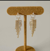 Featuring a star-shaped stud crafted with high-quality baguette-cut crystals, these earrings flow into a stunning multi-layered waterfall design. The delicate balance of sparkle and sophistication makes them perfect for special occasions, evening events, and statement styling.