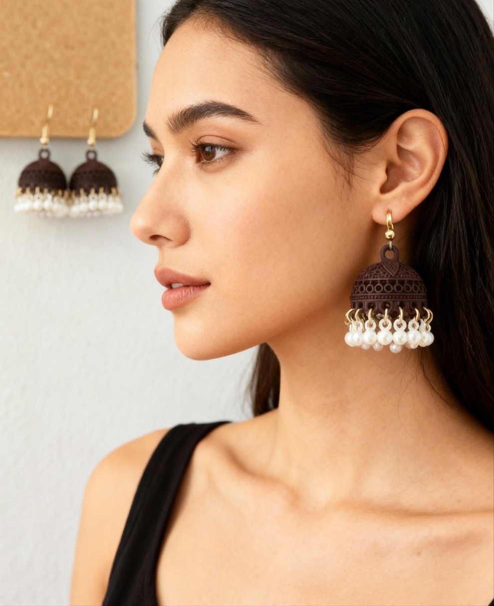 Traditional Jhumka Earrings with Pearl Drops – Ethnic Jewellery for Women (Multiple Colors)